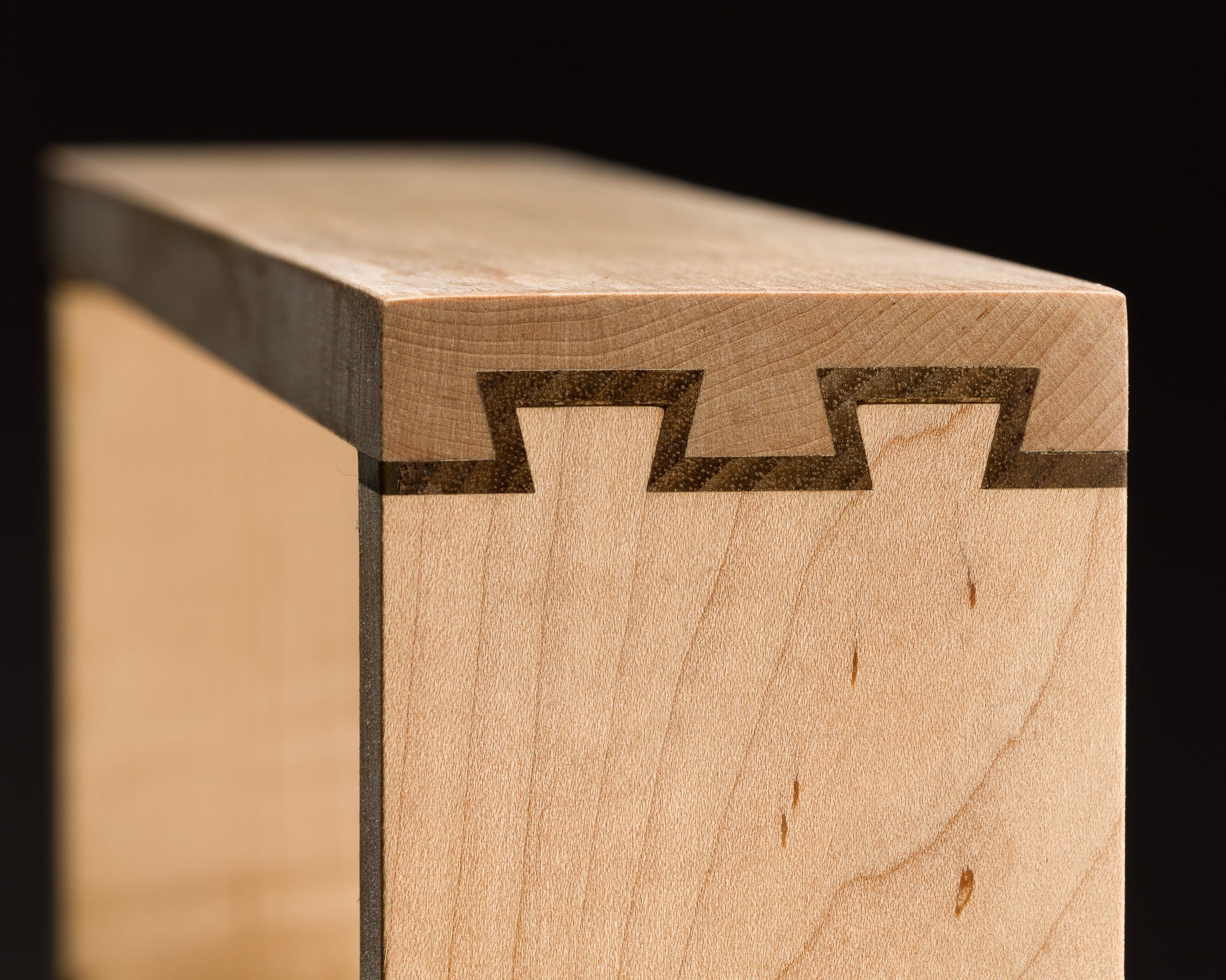 We offer spice racks that are custom designed to fit your kitchen. The spice rack below is made of maple and features walnut inlay dovetail joints. Extra large sizes and additional features can be added for additional charges.